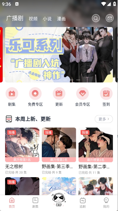2、首页页面汇集了很多的广播剧、视频以及小说漫画等。