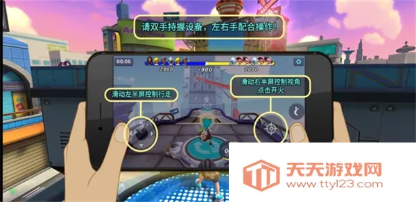 2、游戏的操作非常的简单,左边进行人物的控制,右边这是开火控制视角;