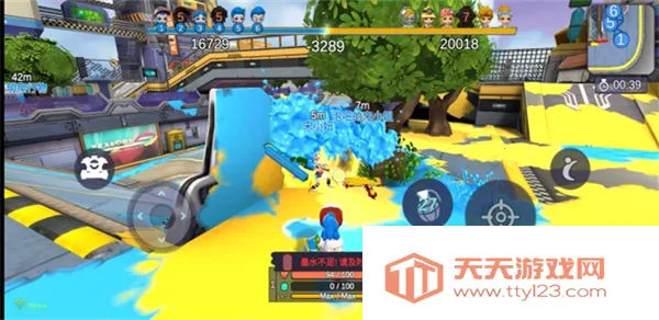3、当我们进入敌方的墨水时,不仅会降低自己的速度还会扣血量,这个时候可以开枪覆盖地方的墨水;