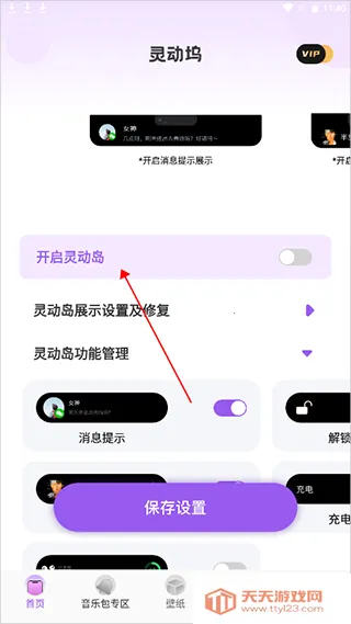 1、首先用户进入应用后就在首页处点击【开启灵动岛】