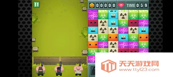4、特色机制玩法:消除节奏与换弹机制完美同步,连续消除五个医疗箱能触发战场急救;每把武器还有隐藏连携技,如火焰喷射器配合冰冻手雷能制造蒸汽爆炸,让战斗更精彩。