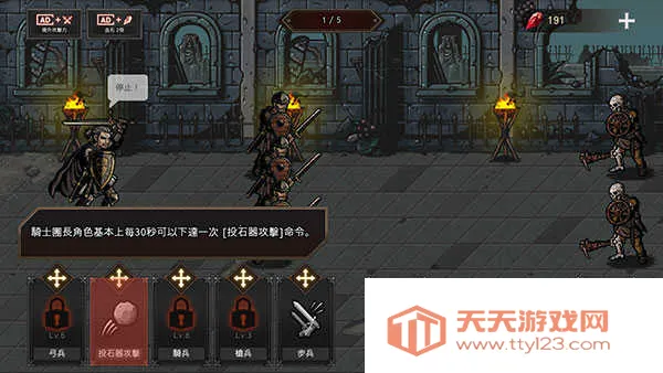 3、骑士团长角色基本上每30秒可以下达一次投石器攻击的命令,使用后就会进入冷却时间,
