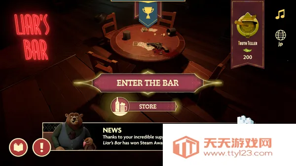 1、打开骗子酒馆手游,点击enter the bar开始;