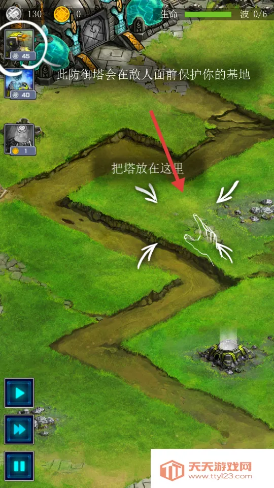 1、在任意空地建造防御塔抵御外星敌人进攻。