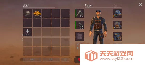 5、点击右下角背包,你可以给角色装备武器、食用食物,以保证角色的健康;