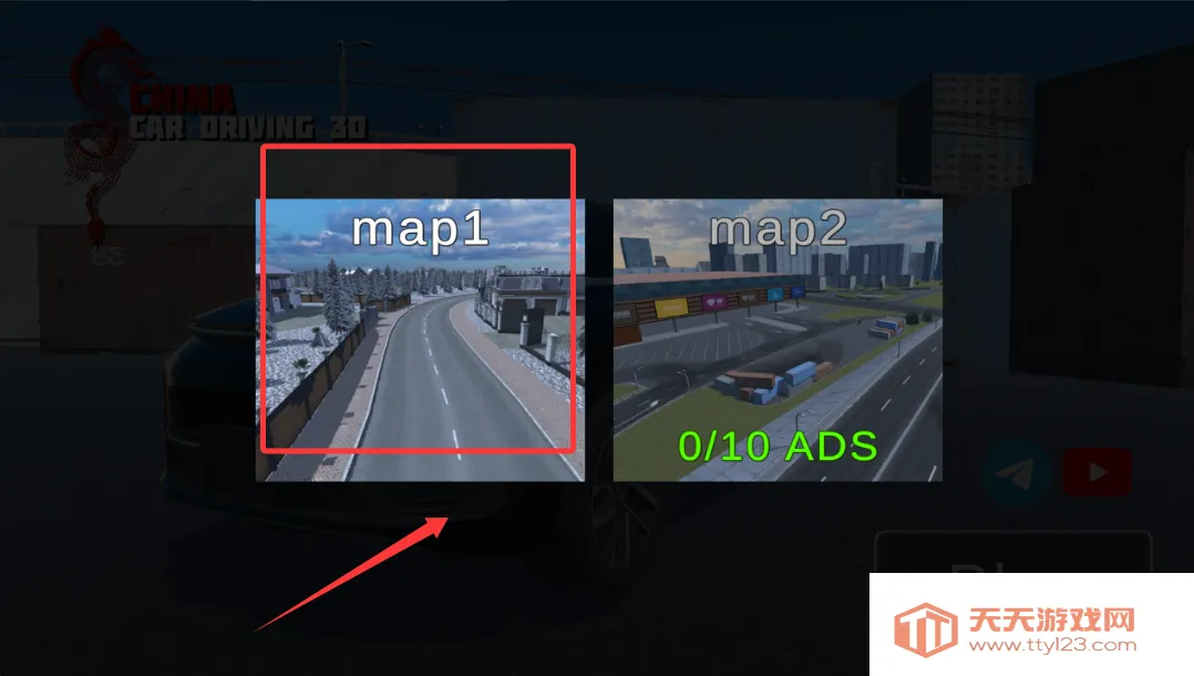 2、在地图选择界面浏览城市街区与乡村公路等多种驾驶场景,每个区域都设有独特的道路规划与景观特色。