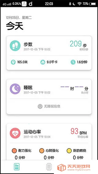 2、进入主界面,可看到个人步数、睡眠情况、及跑步情况