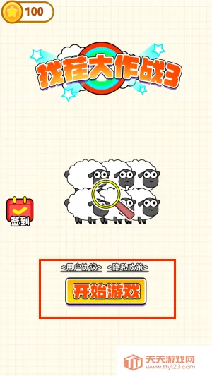 1、进入游戏后,首先点击主界面中央的"开始"按钮进入模式选择。
