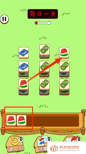 4、将画面上方出现的西瓜等相同元素,累计三个即可完成消除操作。