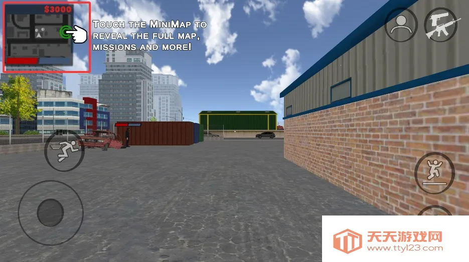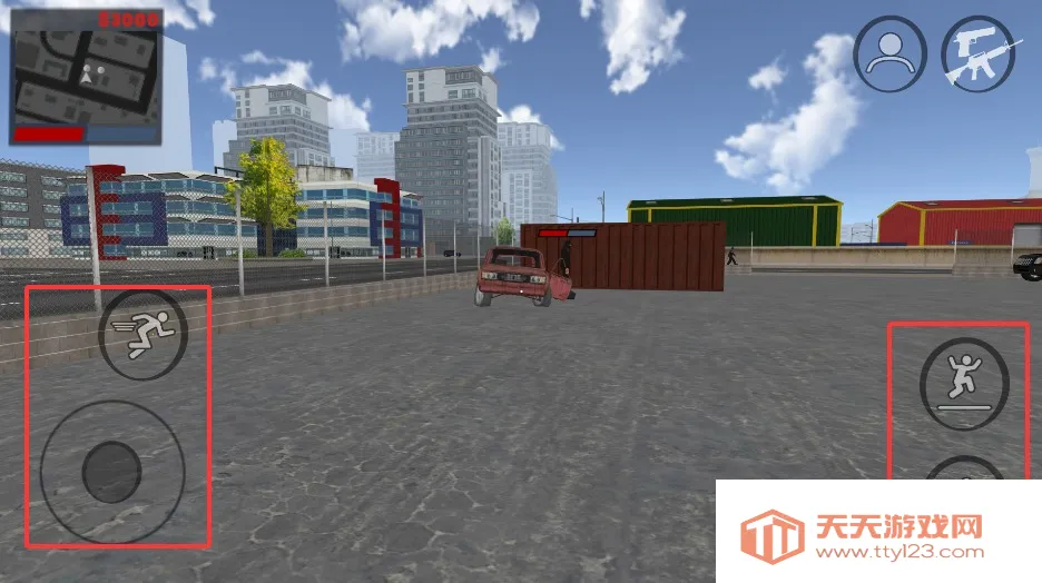 4、通过左侧虚拟摇杆控制角色移动奔跑,右侧按键区域实现跳跃蹲伏等战术动作。