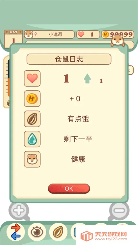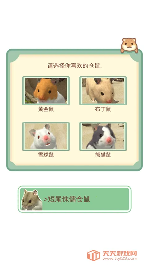 1、开局即开启专属养成之旅:从多款毛色、体型各异的仓鼠中挑选心仪伙伴,自定义性别与名字,赋予它独一无二的身份。