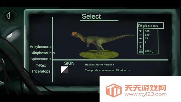 1、丰富恐龙选择:游戏内有诸多恐龙供玩家选择,如霸王龙、棘背龙、迅猛龙等,每种恐龙都有独特属性和技能。