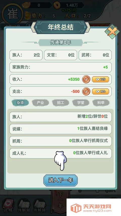 5、而且每一年还有年终总结,帮助玩家更好地管理家族。