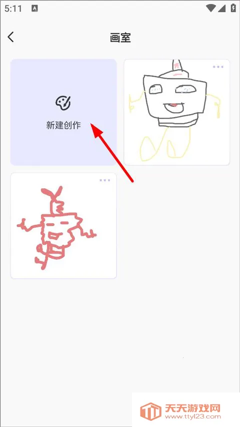 2、进入画室,在画室中用户可可看到已创作并保存的作品,点击新建创作;