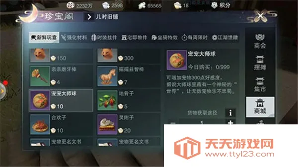 好感度提升方法:商城购买道具【亲亲磨牙棒】——100好感度,4元宝;【摇摇益智椅】——200好感度,7元宝;【宠宠大师球】——300好感度,10元宝