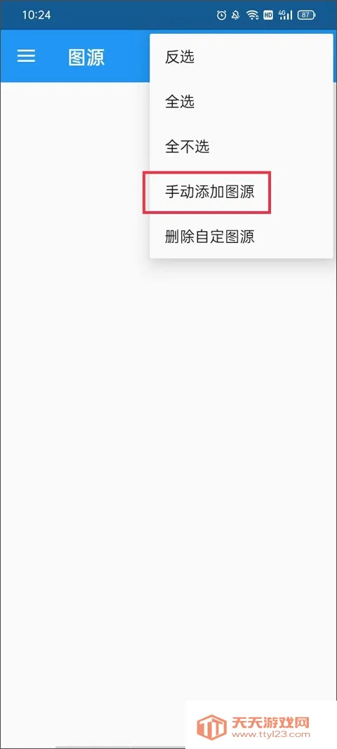3、这里会显示所有的图源网址,点击右上角的三点图标并点击手动添加图源。