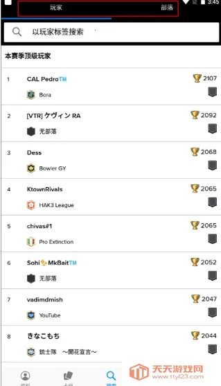 搜索包含玩家和部落两个部分,都是通过标签来找到相对应的成就、等级等信息。