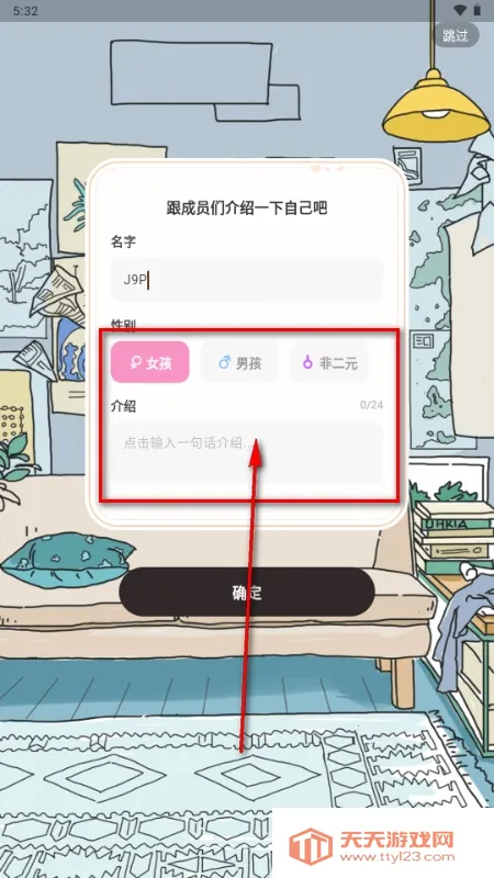 3、点击选择创建我们的OC角色,输入姓名,性别以及个人介绍;