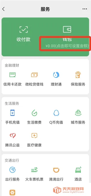 2、进入到虚拟微信界面后,点击【钱包】下方设置金额。