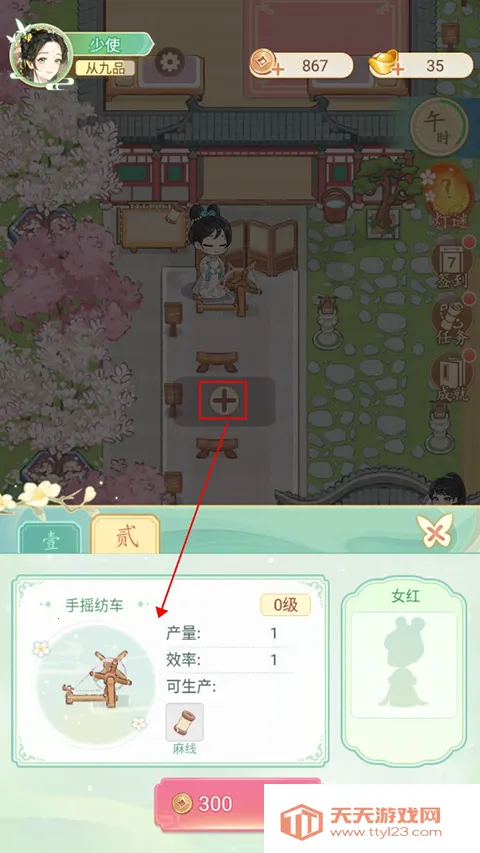 玩家点击床铺区域加号就可以新建一个床铺,迎接采女的到来。