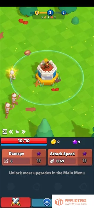 3. 丰富的升级要素:可升级弓箭手、塔,提升战力,收集战利品卡片,升级各个属性来更好地生存。