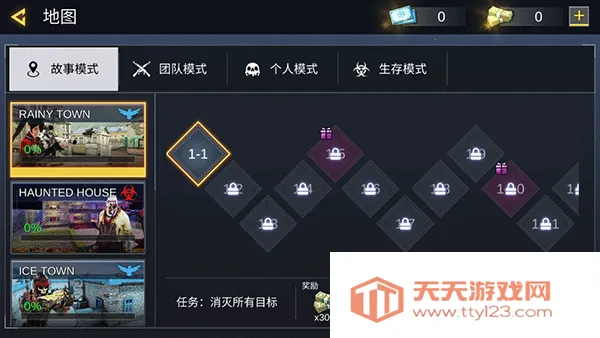 2、玩家在游戏中可以选择自己喜欢的模式进行畅玩,其中提供了故事、团队、个人、生存模式这四种玩法模式可以体验;