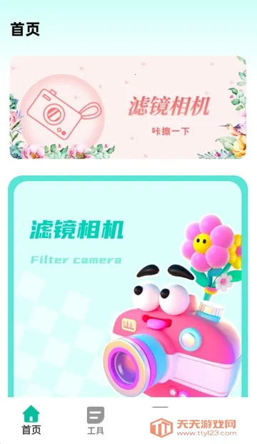 2、进入软件首页,可使用滤镜相机进行拍摄等