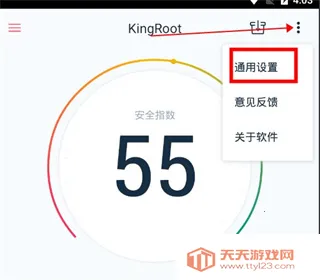 3、Root完成之后,点击软件的右上角更多菜单,在弹出菜单选择通用设置。