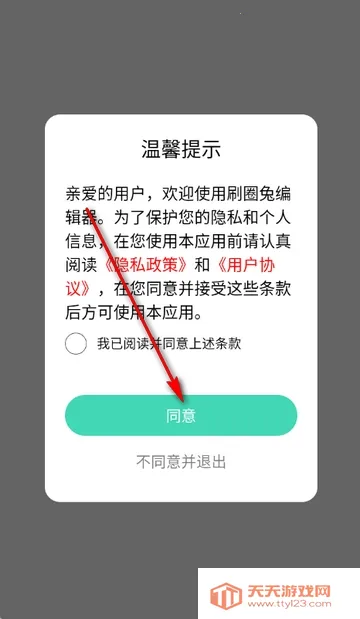 1、打开刷圈兔编辑器app,点击同意隐私政策