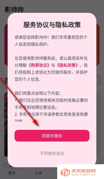 1、打开影帅帅特价电影票app,点击同意隐私政策