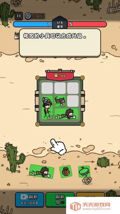把相同的士兵可以进行合成。