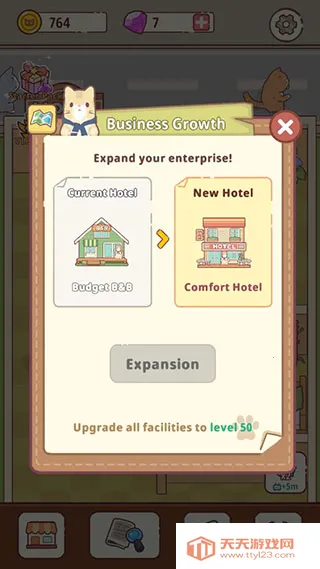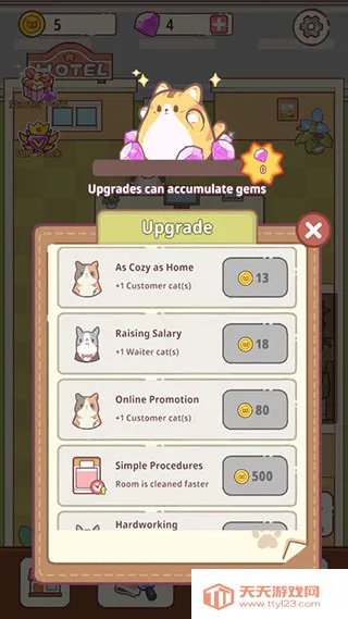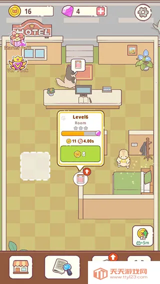 4. 舒缓配乐:搭配休闲舒缓的背景音乐,还有可爱的动画猫咪,使整个酒店鲜活起来,让玩家充分感受模拟经营游戏的独特魅力,放松身心。