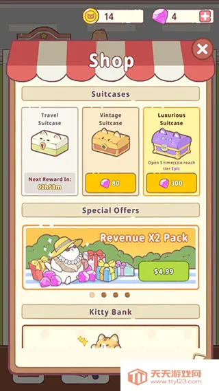 3. 多样玩法:玩法丰富多样,既采用经典模拟经营玩法,又融入全新模式。玩家要设计酒店的方方面面,还能通过DIY建造专属酒店并装饰猫咪,定制形象,体验感十足。