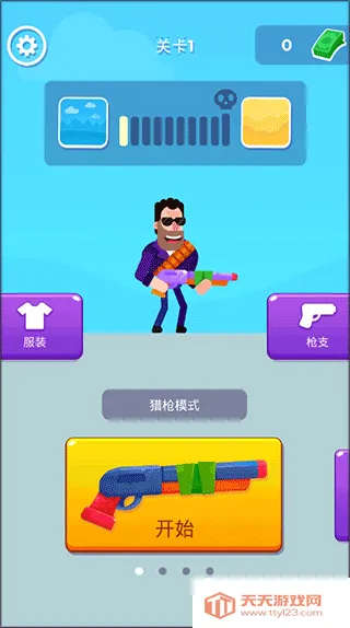 1、打开狙击火柴人官方正版,进入游戏可以选择模式服装和枪支来进行游戏。