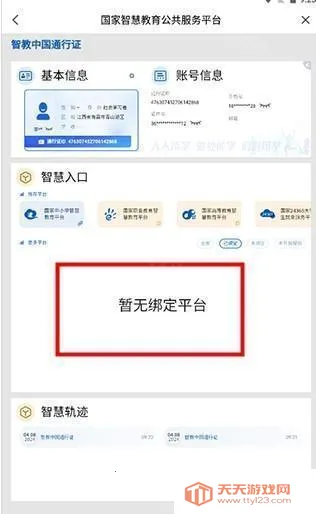 6. 注册完成后,回到我页面,点击智教中国通行证进行平台绑定。