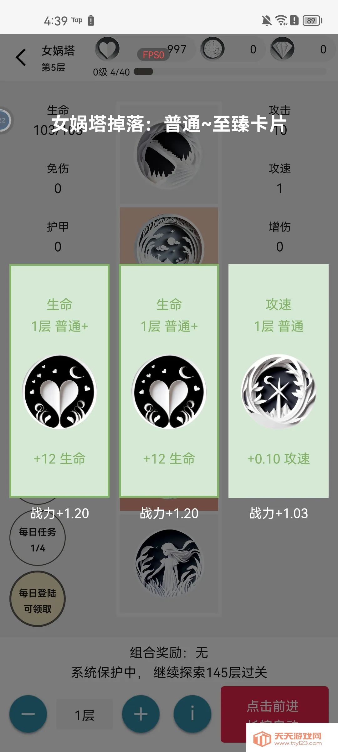 这款游戏玩法延续随机爬塔,架构偏向挂机,设定了体力条,还有挂机奖励,配置了智能选卡的AI。它玩法简单易上手,没有广告,对玩家很友好。游戏机制平衡精妙,钻石获取途径多。其独特的地牢模式和强随机性,能带来不同体验。比如在挑战后期,免伤和吸血等技能很关键。开局先刷Buff,像伏羲的一画开天、朱雀的吸血等。总之,是一款值得一玩的游戏,能让玩家在挂机中体验变强的快乐,感受每一次不同的挑战。