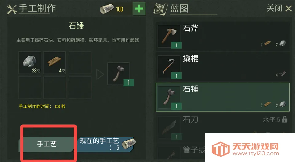 3、选择需要制作的物品,点击左下角【手工艺】开始制作。