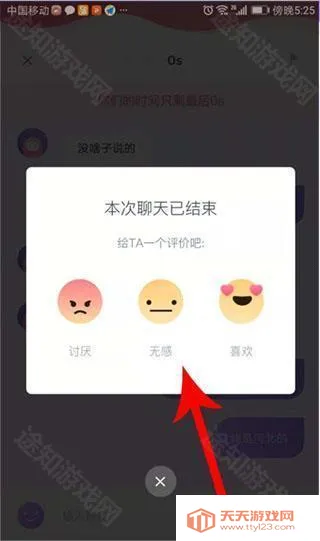 5、倒计时结束后,你与对方的对话窗口便会关闭,打开评价弹窗,点击列出的选项即可。