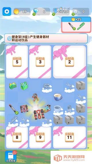 2. 创新二合玩法融合:告别枯燥点击获资源模式,引入策略性二合一合成机制,移动合并同类道具升级物品等级,高效产出金币与稀有素材。