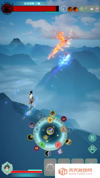 1、进入游三界游戏,玩家将化身为修士,开始你的修仙之旅,御剑飞行射击沿路的敌人。