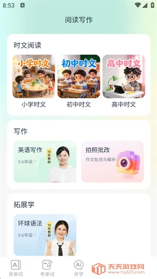 8、你还可以在【阅读写作】模块内加强自己的阅读和写作能力哦