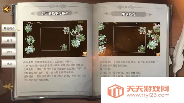 1.核心操作技巧上,拾取与移动碎片时,单指长按碎片并滑动屏幕就能操作,将其拖到正确位置附近会自动吸附,放错则回弹防误触。画布缩放方面,双指捏合缩小画面利于观察整体,双指张开放大可看清碎片纹理,提高拼图效率。