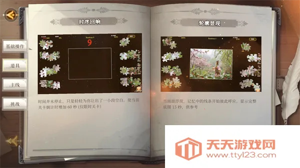 2.道具使用策略里,时序回响道具用于限时关卡,时间紧张时使用能增加60秒倒计时,为复杂拼图多争取思考时间。轮廓显现道具在整体构图不明时使用,可显示完整底图15秒,助玩家快速定位关键碎片,尤其适合高难度无参考图关卡。