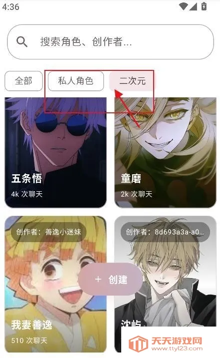 2、或者点击上方关键词标签,精准定位喜欢的角色分类
