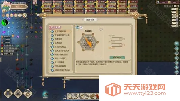 (2)针对修仙就会有很多功法,功法可以在剧情探索中获取。每种功法没有高下之分主要就是针对不同属性的小人,因为功法也是对应一些东西的,这里不细说。