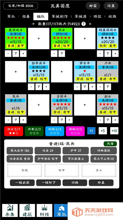 此时科技已经点出了绿兵,可以买绿战士和重战士,白色剑士和弓箭手。