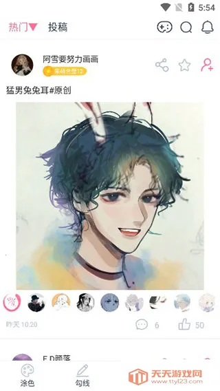 4. 分享互动乐趣多:能将作品设置为手机壁纸或打印成装饰壁画,还可实时分享作品,在绘画社交圈子与他人互动交流。