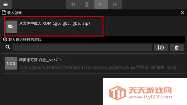 1、打开SkyEmu模拟器后点上方的载入游戏,可以选择gb,gbc,gba及ds游戏。