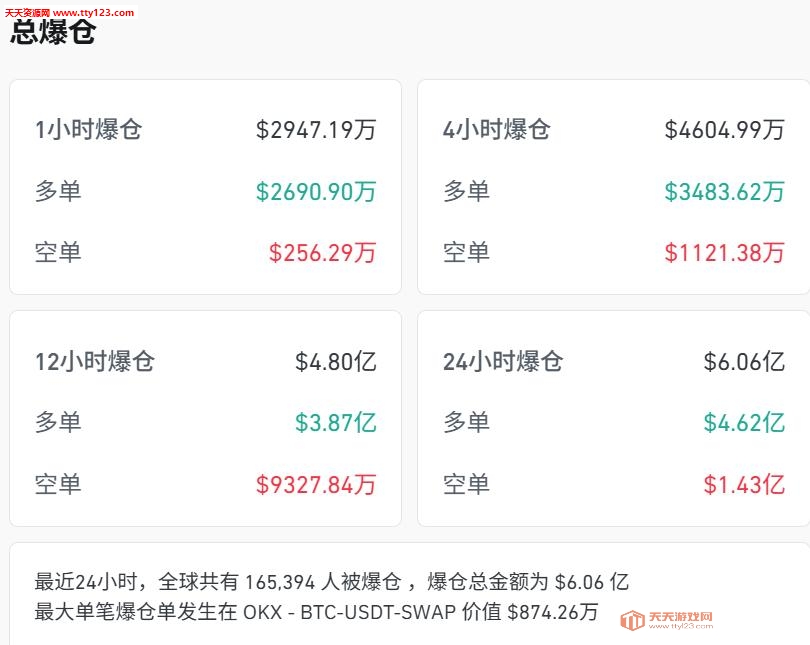 Coinglass数据显示,过去24小时,全球共164.4万人爆仓,爆仓总金额192.16亿美元。